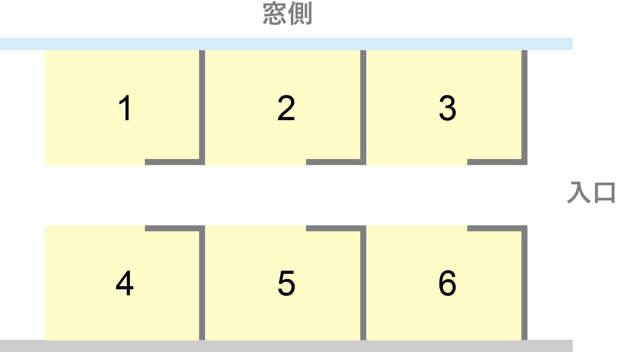- 席数:6席(1人掛け)
